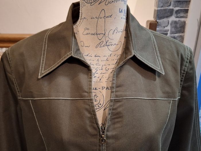 Veste manches 3/4 zippée kaki aux coutures apparentes - photo numéro 1