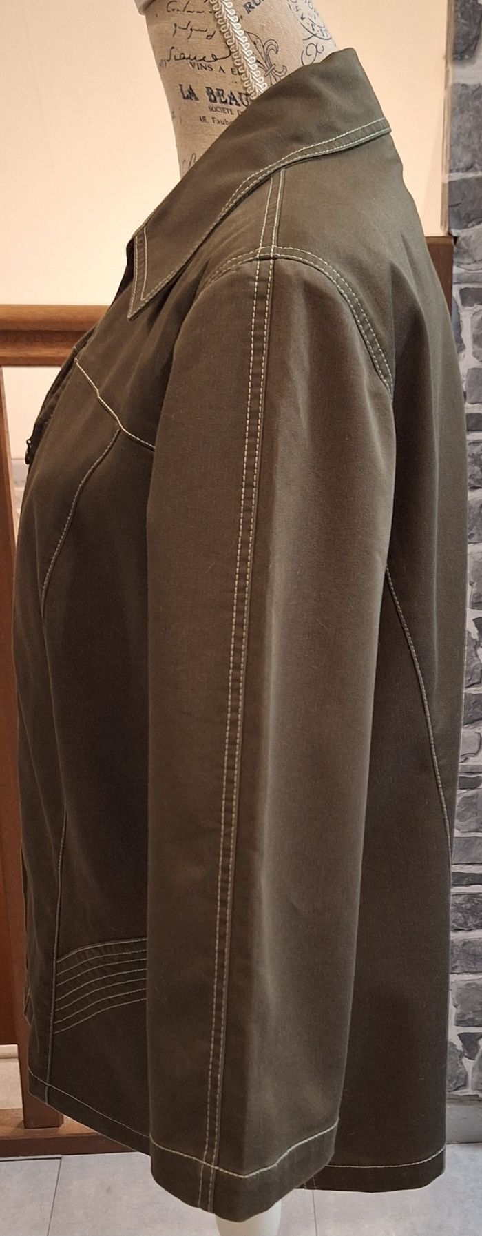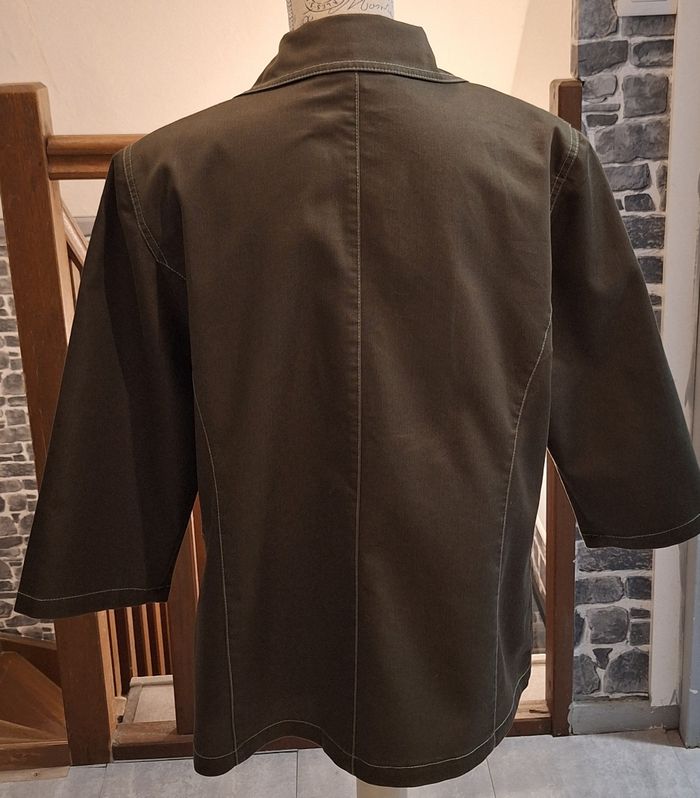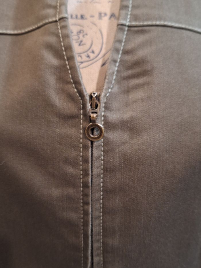 Veste manches 3/4 zippée kaki aux coutures apparentes - photo numéro 2