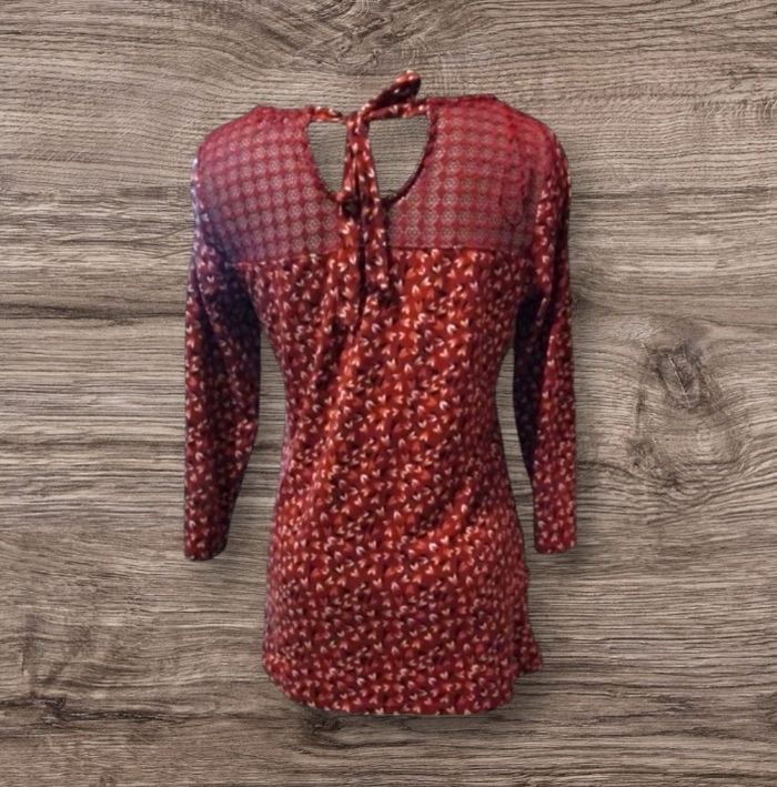 Pull maternité rouge col dentelle à noué - photo numéro 2