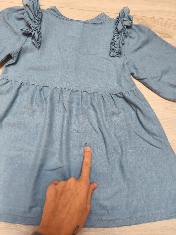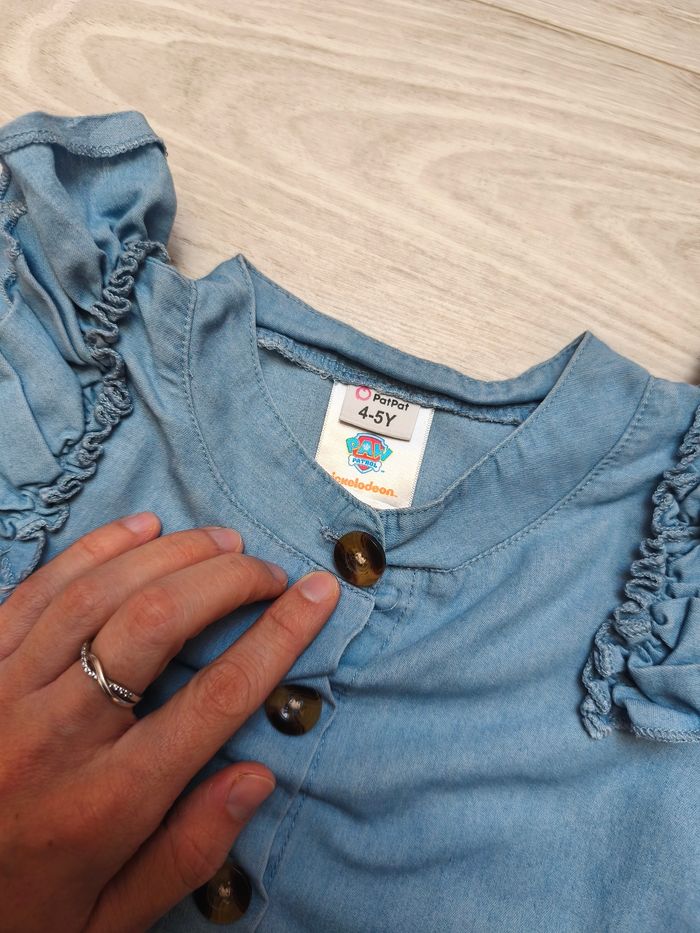 Petite robe bleu claire à motif Stella de la pat'patrouille. Élastique au niveau des poignets. petit volant au niveau des épaules. Taille 4/5 ans Marque pat pat Elle est en très bon état mais à une tâche à l'arrière (cf photo)