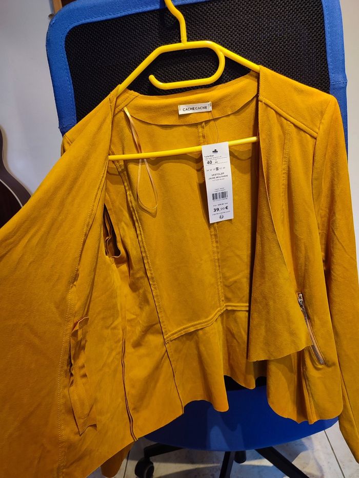 Je vends cette jolie veste effet daim très doux 🥰 Neuve jamais portée encore avec son étiquette. Marque Cache Cache, taille 40 (peut convenir à un 38 car elle est très ajustée) Couleur jaune moutarde Prix d'achat 40€ je l'a vend 20€ Envoi rapide 📦