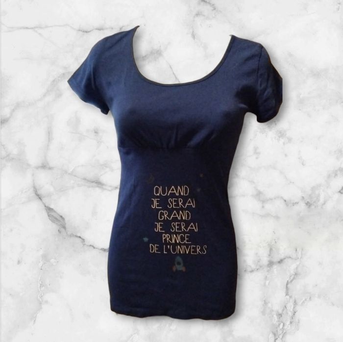 T-shirt de maternité, détail quand je serai grand je serai prince de l'univers en taille M.