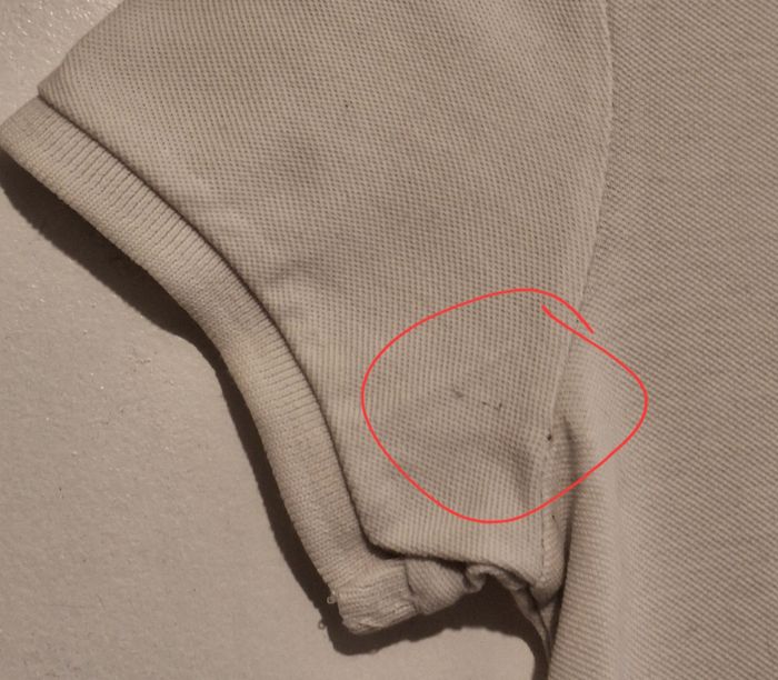 Col avec 3 boutons. Petite broderie à la poitrine, fentes de chaque côté à la taille. Petites traces, il suffirait de le teindre en couleur foncée, il serait parfait.