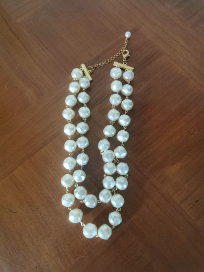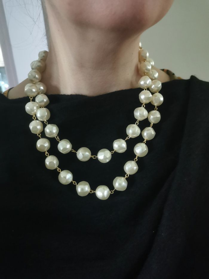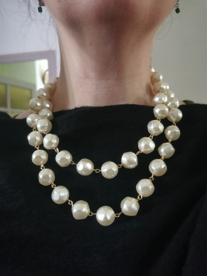 Collier vintage de perles blanc nacré en deux rangées - photo numéro 1