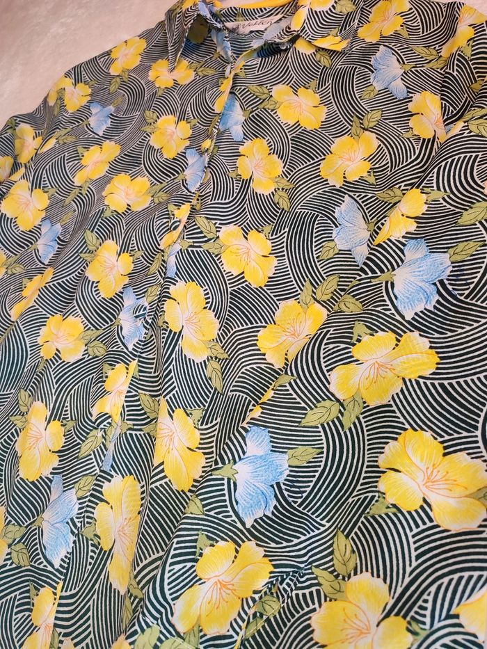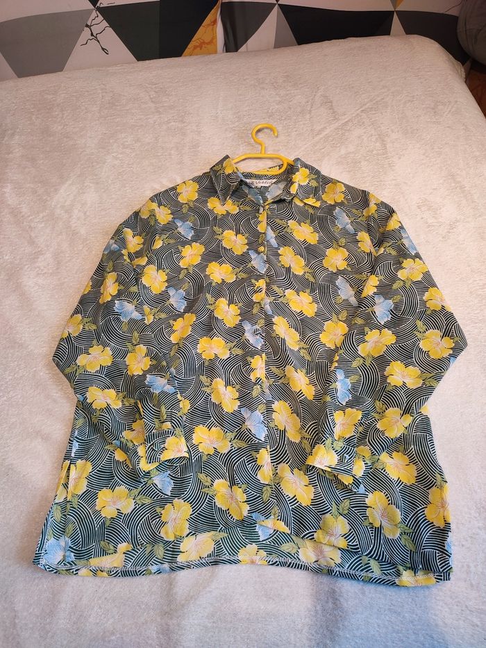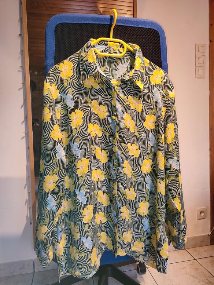 Joli chemisier femme taille 46, état neuf aucun défaut. Motifs fleurs. Largeur aisselle à aisselle: 62cm Longueur 75cm