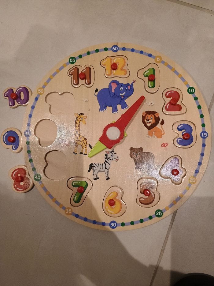 Puzzle en bois voiture horloge animaux complet en très bon état