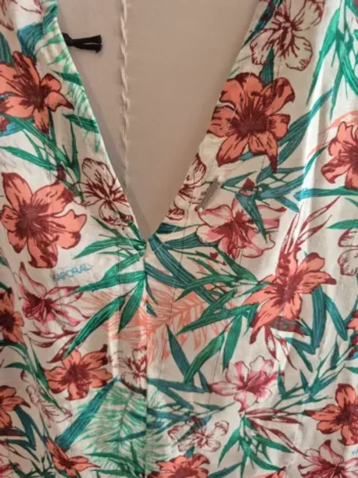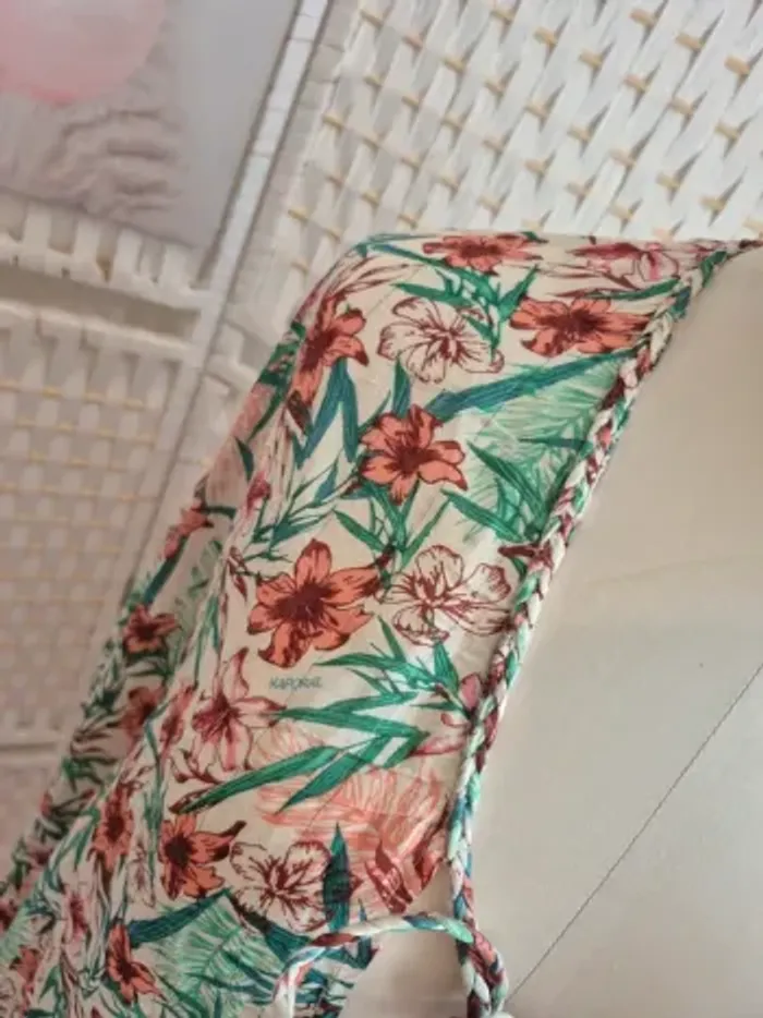 💕Jolie tunique / Kimono fleuri "GROW GUAAOP " Kaporal - La touche bohème de l'été ! Femme TS /36 🌸 Craquez pour ce magnifique kimono/ tunique Kaporal, modèle "GROW GUAAOP ", qui respire l'été et les bonnes vibes ! Ses imprimés fleuris dans les tons de corail, vert d'eau et blanc cassé sont absolument adorables et apporteront une touche de fraîcheur à toutes vos tenues. Hyper léger et fluide, il est parfait pour les journées ensoleillées, que ce soit par-dessus un maillot de bain à la plage, avec un petit débardeur et un short pour une balade en ville, ou même pour pimper une tenue plus simple. Le petit plus ? Son lien ajustable à l'avant pour le porter comme vous voulez ! 👀 N'hésitez pas à consulter mes autres articles, je fais un grand tri. Faites vous plaisir ! Ici ⏩ #ribeirozazafemme36 Neuf avec étiquette (valeur 69,90€), il n'attend plus que vous pour virevolter au rythme de l'été ! Fermeture par liens à nouer. Matière : 98% viscose et 2% Lurex® État : Neuf avec étiquette Marque : Kaporal Taille : S / 36 (convient aussi à un M grâce à sa coupe ample)Matière fluide et fine N'hésitez pas si vous avez des questions ! ✨ #kimonofemme #femmekimono #kimonokaporal36 #36femme #36kaporal #tunique36 #blouse #blousefemme #blousefemme36 #kimono36 #tuniquekaporal #kimono #floral #fleurs #ete #vacances #plage #boheme #kaporal #neufavecetiquette #summer #modefemme #fashion #tendance #printempsete #occasionarefaire #hideaway
