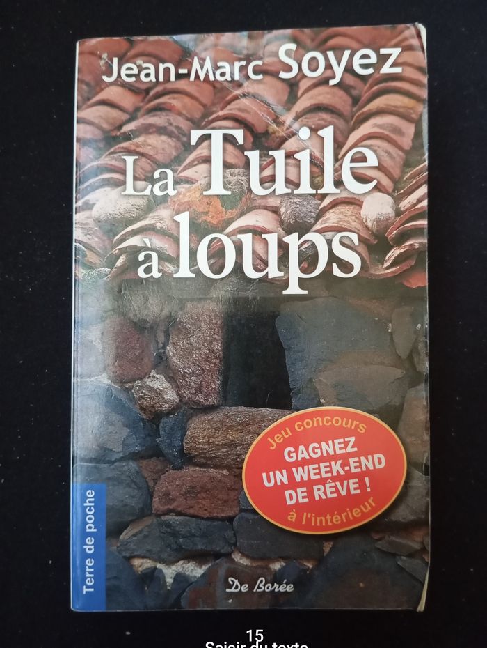 Je vends ce roman "La Tuile à loups" de l'auteur Jean-Marc Soyez. - Titre : La Tuile à loups - Auteur : Jean-Marc Soyez - Genre : Roman - Éditeur : De Borée Bon état N'hésitez pas à me contacter pour plus d'informations !