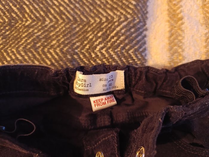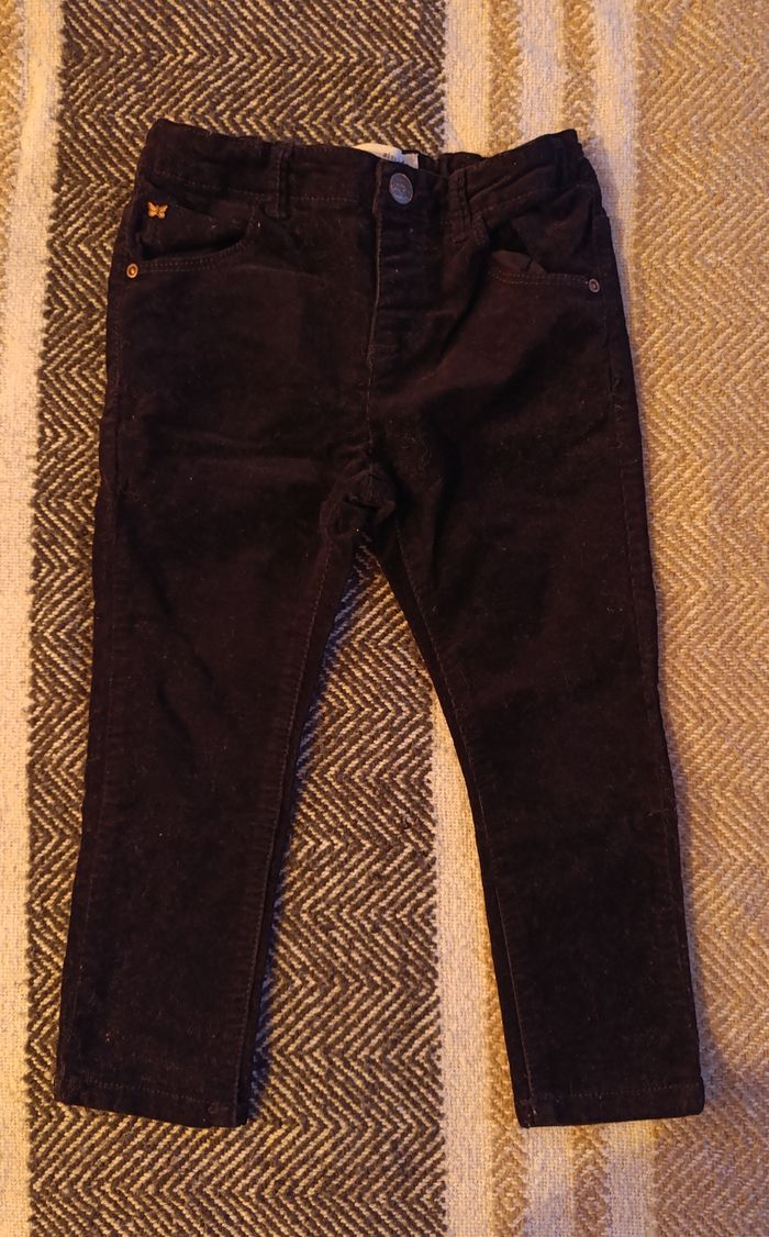 Pantalon en velours noir. Réglable à la taille. De marque Zara en 2/3 ans.