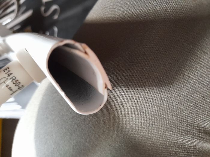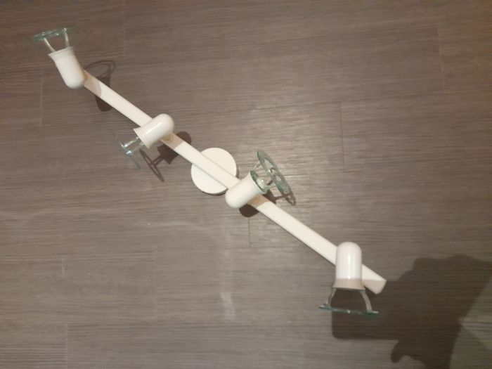 Plafonnier blanc 4 spots il manque un embout voir photo 4 vendu sans ampoules 80 cm 6 euros