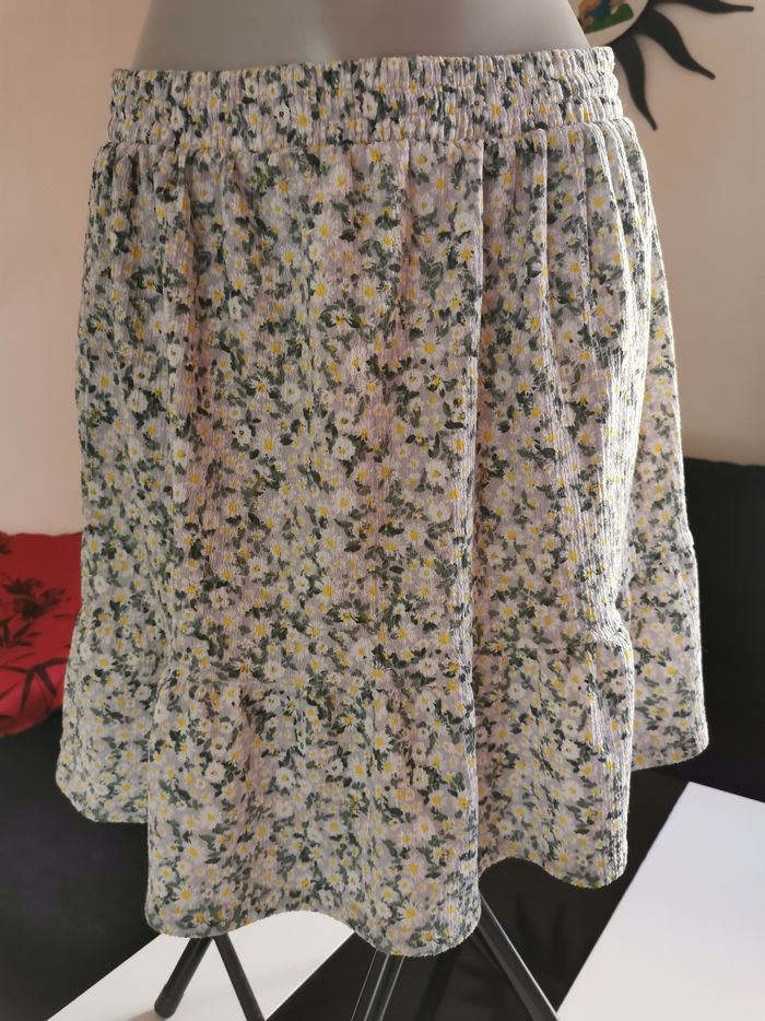 Je vends cette jolie jupe à fleurs grises et jaunes. - Type de produit : Jupe - Taille : l - Couleur : Gris / Anthracite - Motif : Fleurs N'hésitez pas à me contacter pour plus d'informations ou de photos.