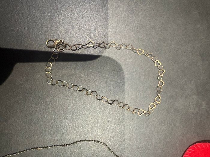 Chaîne avec bracelet en cœur et bague réglable en forme de cœur enfant.