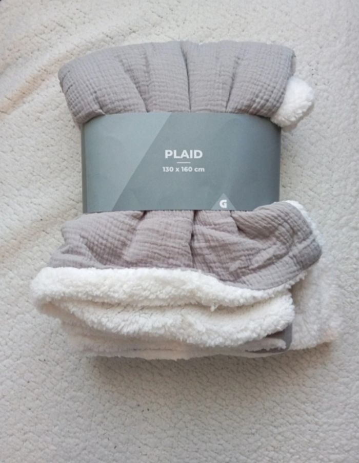 Plaid gris gaze de coton/ teddy - photo numéro 1