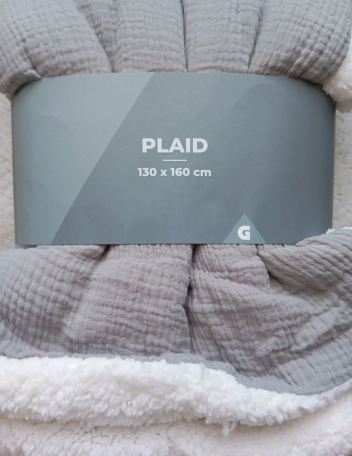 Plaid gris gaze de coton/ teddy - photo numéro 2
