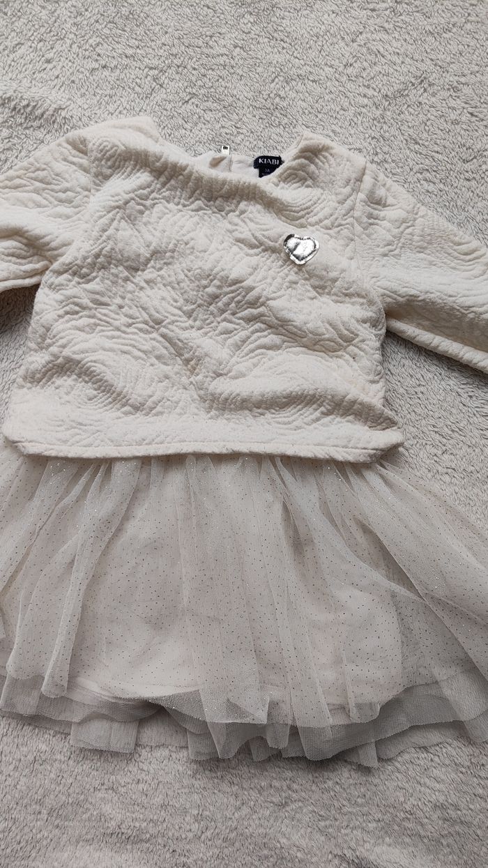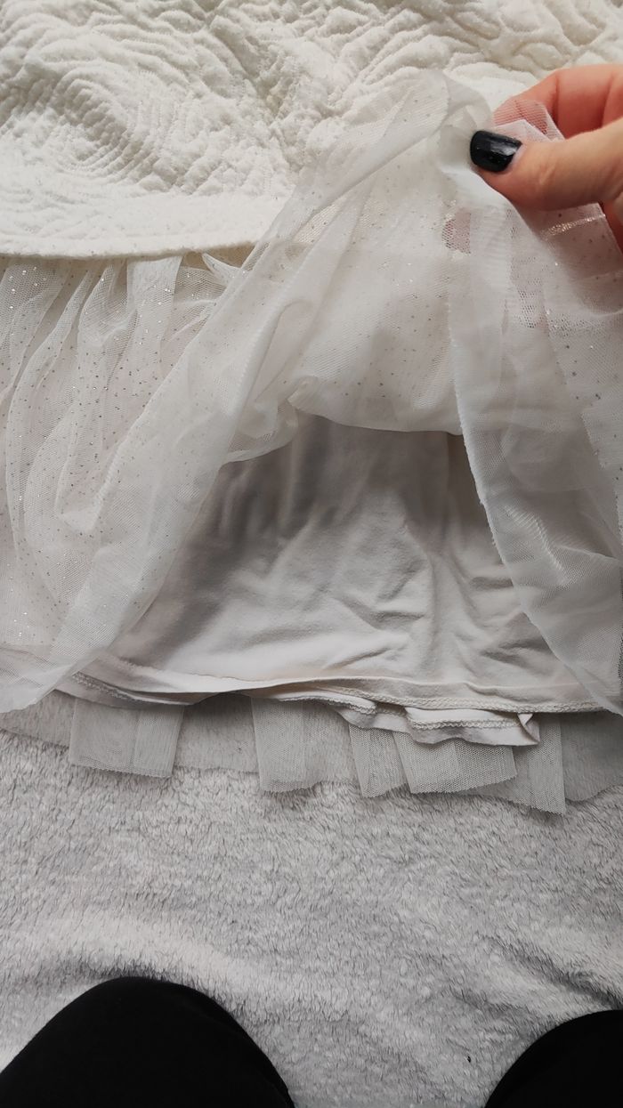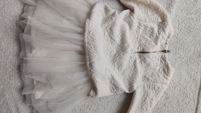 Robe jupon blanc crème , avec jupon en tulle pailleté. Fermeture éclair a l'arrière Manches longues