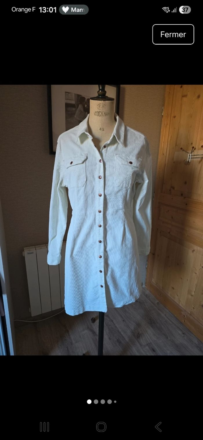 robe en velours côtelé ceintree au niveau de la taille, boutonnage par pression