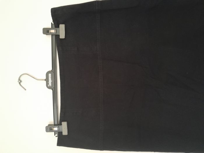 Jupe en jean, fendu derrière, attache fermeture éclair + bouton pression Longueur : 53cm, Fente 17cm Taille en cm : 44, Fermeture éclair : 17cm Matière : 98 % Coton, 2 % Elasthanne Marque : Violeta