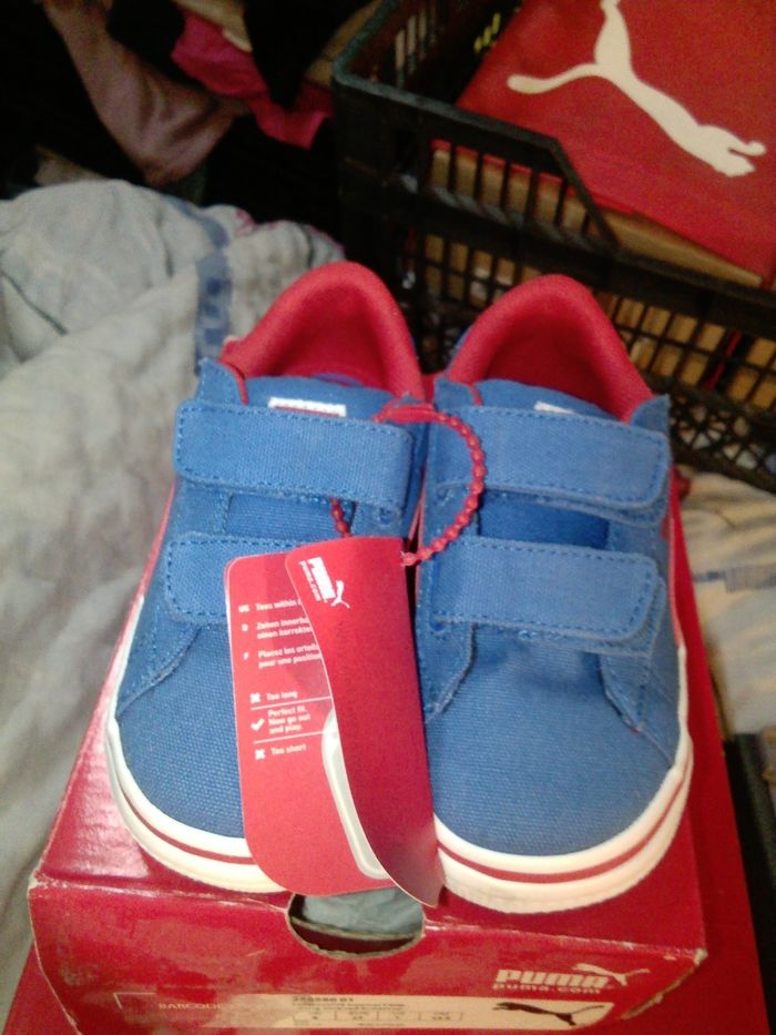 Je vends cette paire de baskets Puma pour enfant. - Type de produit : Baskets - Univers : Enfant - Marque : Puma - Pointure : 23 - Couleur : Bleu ciel - Matière : Textile - État : Neuf avec étiquette Envoi sous 2 a 3 jours