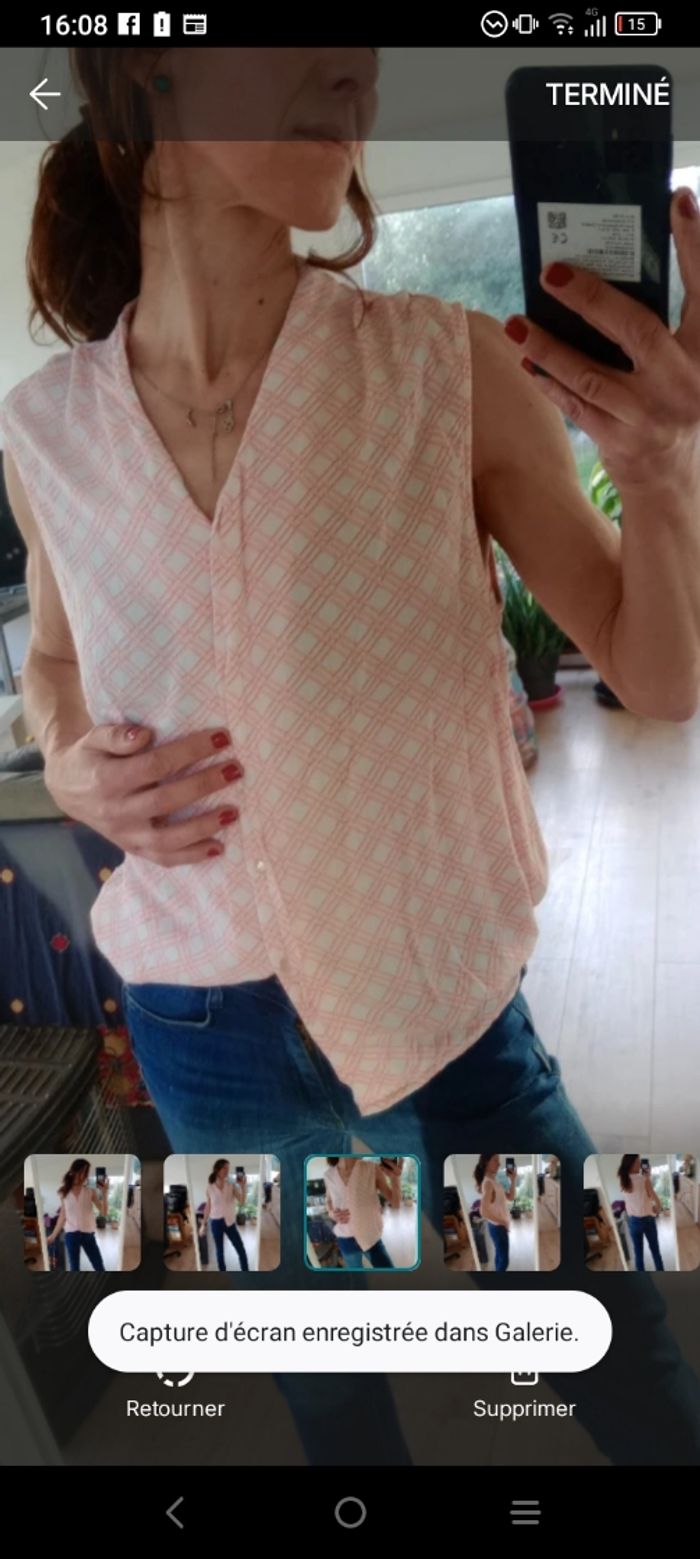 Blouse femme sans manches 46 blanche et rose c83 - photo numéro 5
