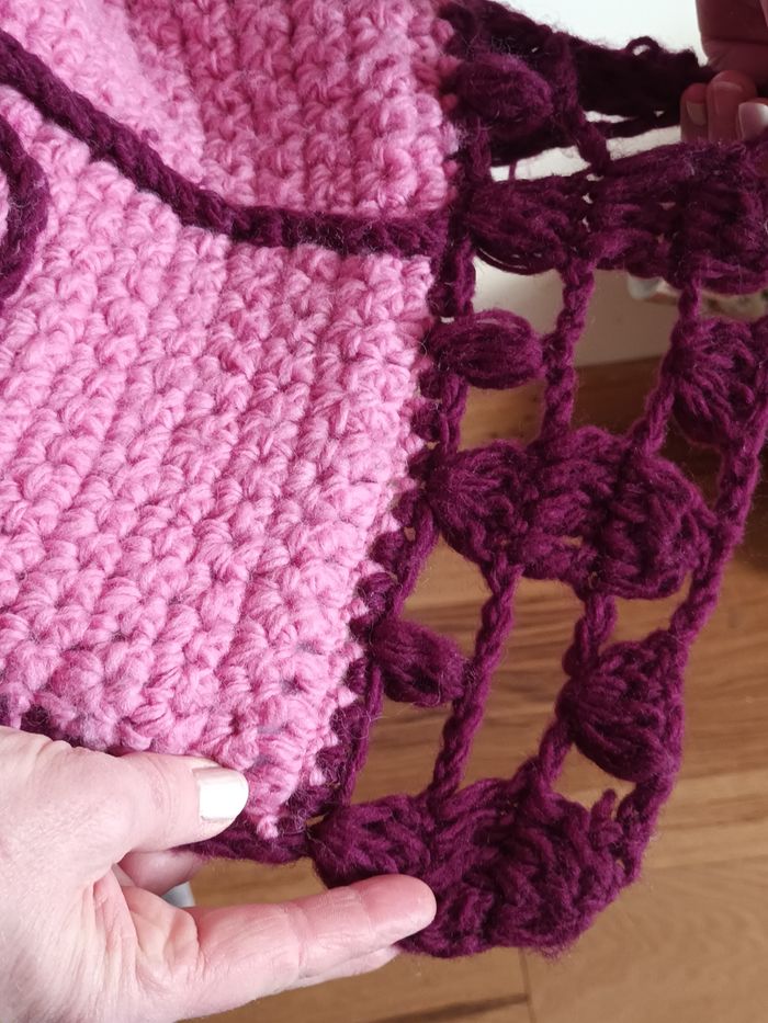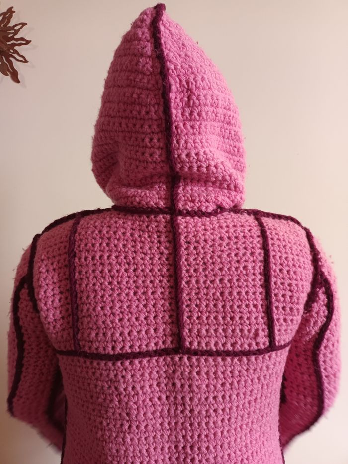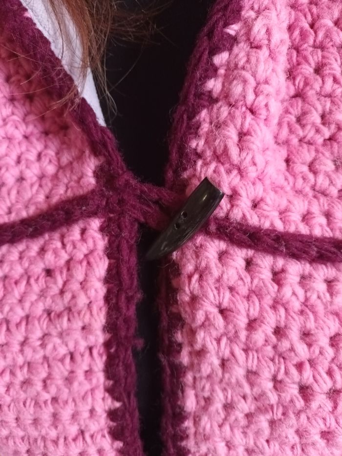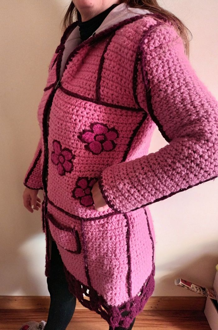 Manteau au crochet style bohème rose, très chaud doublé polaire Taille 36/38 Très bon état