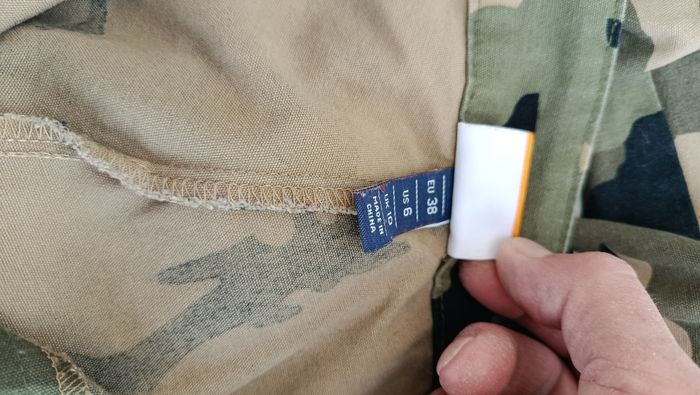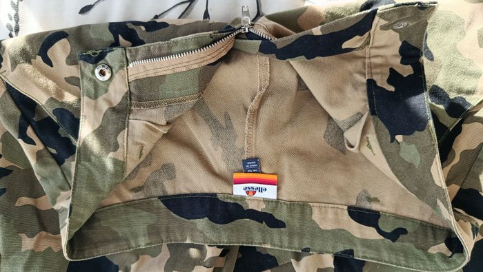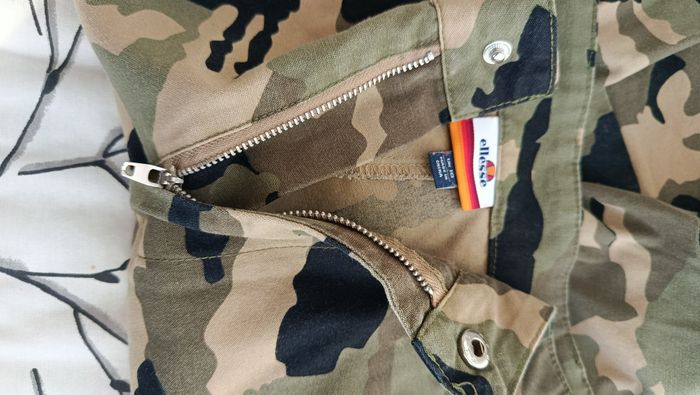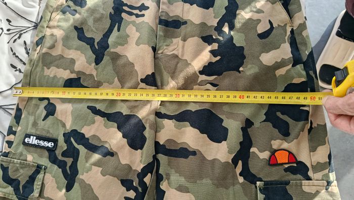 Pantalon cargo Ellesse, militaire. Taille 38. Poches sur les côtés, bas resserrés, logos. Très bon état. Mesures: ceinture: 36 cm, longueur totale: 98 cm Vérifiez bien les mesures avant achat.