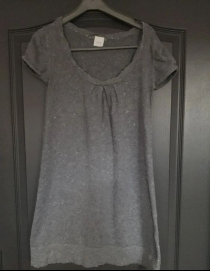 Robe-pull de chez Camaïeu. Manches courtes. Matière : 40% coton, 30% viscose, 20% polyamide, 10% angora. Couleurs : gris, tacheté blanc. Taille : 36/S. Très bon état général. #evivi59fille36 #evivi59filles #evivi59femme36 #evivi59femmes Prix : 4,50 euros. N'hésitez pas à consulter mes autres annonces ! Possibilité de faire un lot sur demande pour diminuer les frais d'envoi et de bénéficier d'une réduction de : - 15% à partir de 2 articles achetés, - 20% à partir de 3 articles achetés, - 25% à partir de 5 articles achetés. #robepull