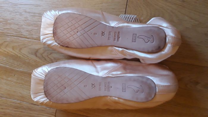 Paires de pointes BLOCH balance european taille 39. Légèrement assouplies mais jamais portées en cours car trop petites. Elles sont en excellent état. Ne possèdent pas de cordons. Élastiques déjà cousus.