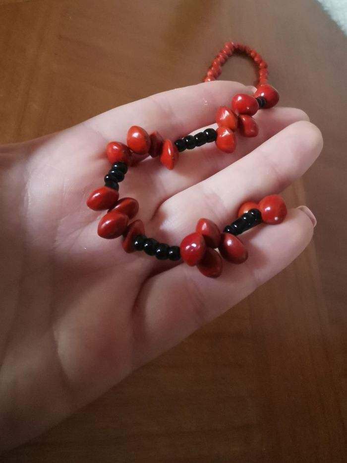 Sautoir en graines rouges porte-bonheur naturelles, adenanthera pavonina, bois de santal rouge et pe - photo numéro 4