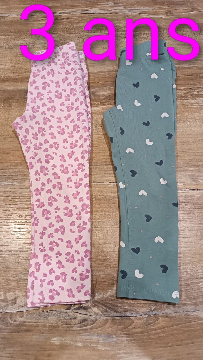 Lot de 2 leggings, l un rose et l'autre vert, taille 3 ans, de marque Orchestra, très bon état. Possibilité de faire des lots