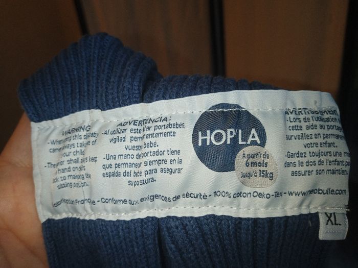 A servi juste quelques moi avant que mon enfant dépasse les 15 kg Acheté neuve Taille XL Moi je l'ai acheté pour l'hiver par dessus un manteau je Fais du L et c'était parfait. Bleue côtelé Bien entretenue toujours lavée a 30 ° en machine