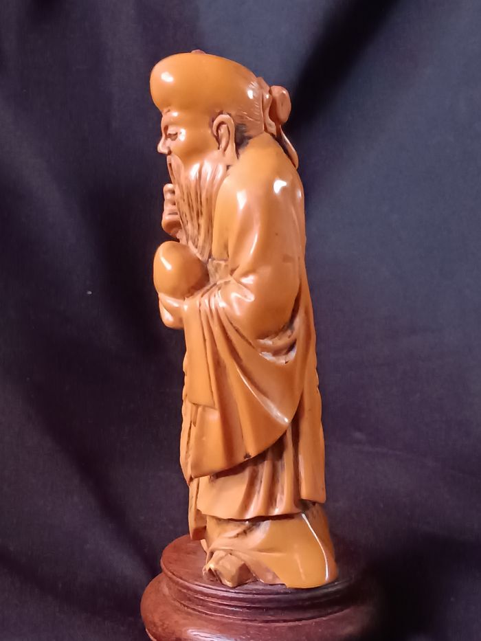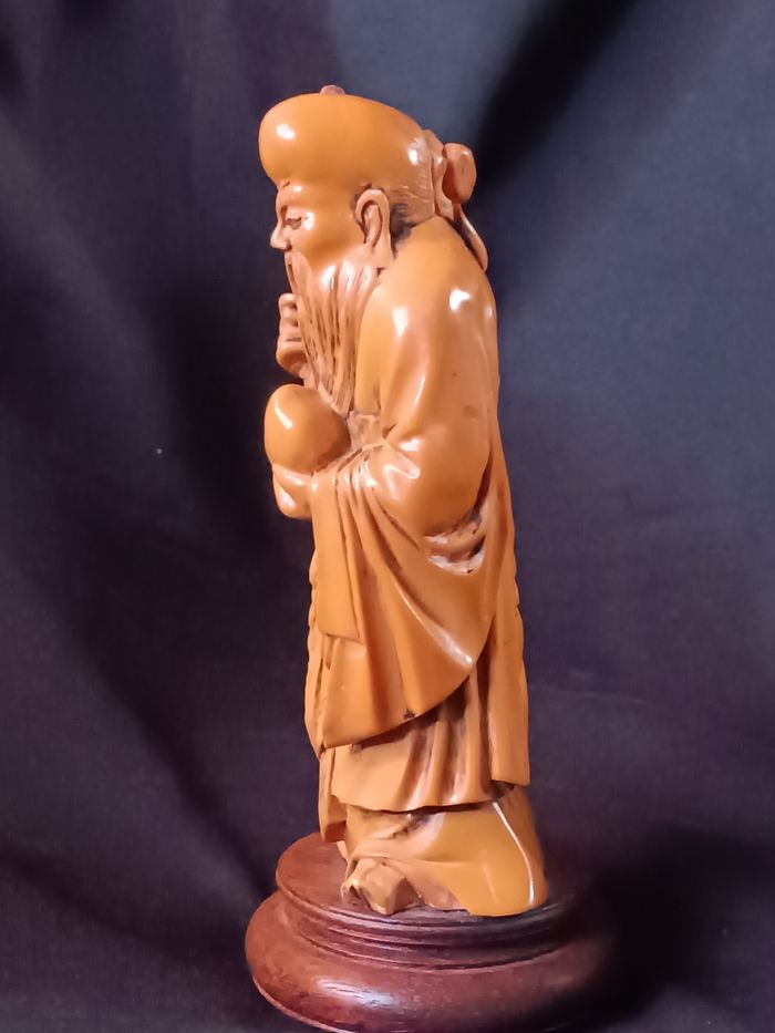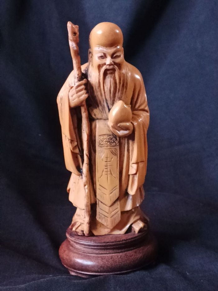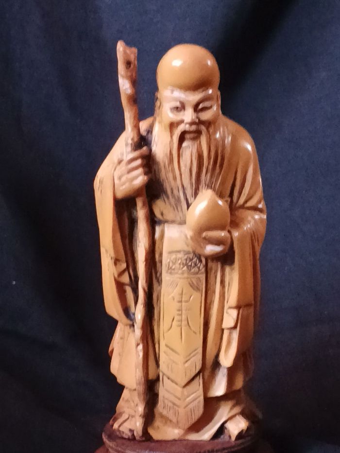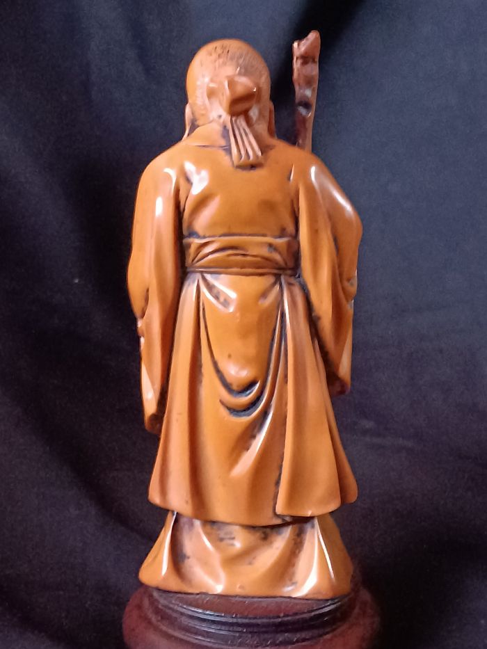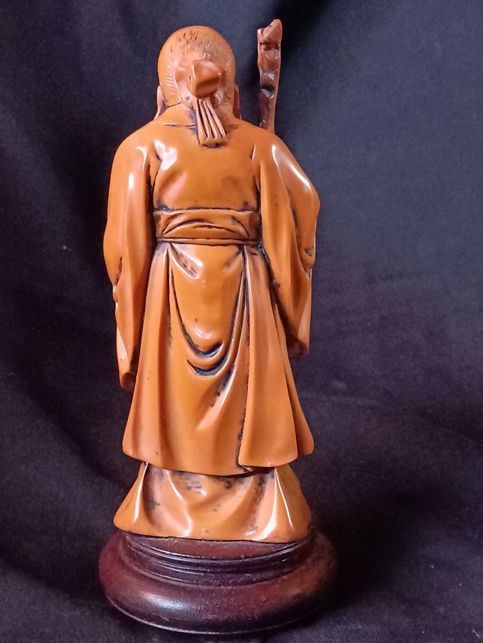 Vieux sage asiatique en résine hauteur 19 cm collé sur son support bon état cf photos