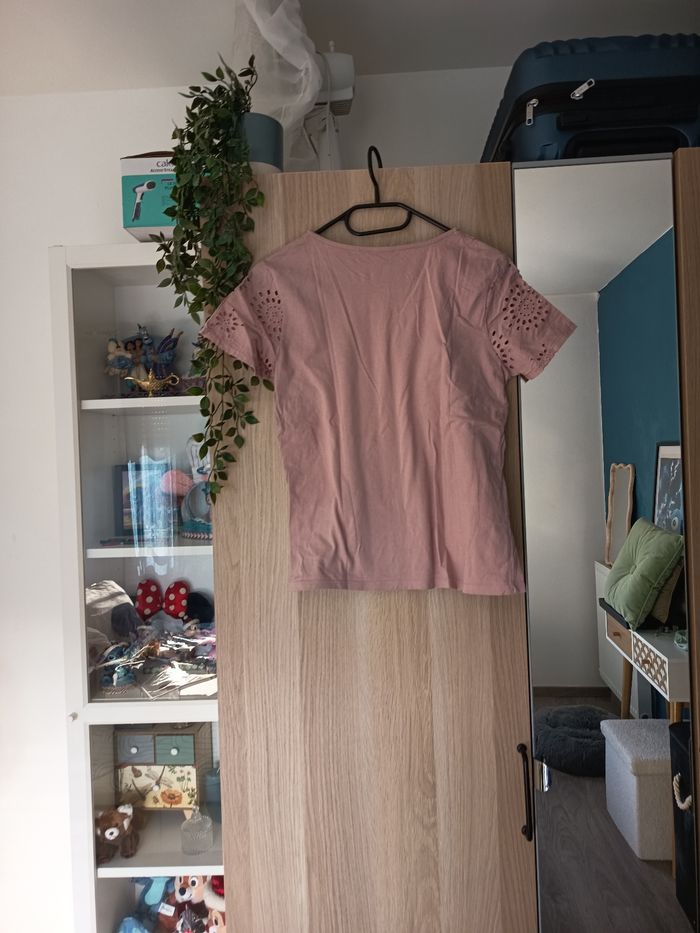 Tee-shirt rose clair avec broderie Kiabi - Taille S 36