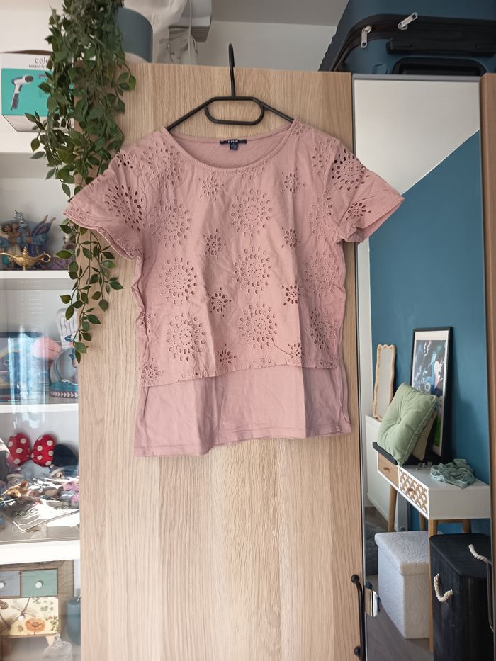 Tee-shirt rose clair avec broderie Kiabi - Taille S 36 Très bon état