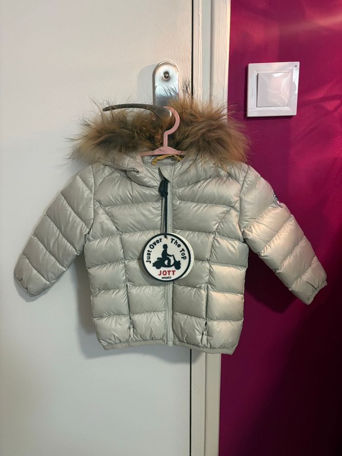 Doudoune Jott, mixte, col capuche fourrure, 6 mois noté sur l’étiquette mais trop grande pour mon bébé fille de 6 mois, je dirais plutôt 9 mois. Vous avec les mesures dans les photos.