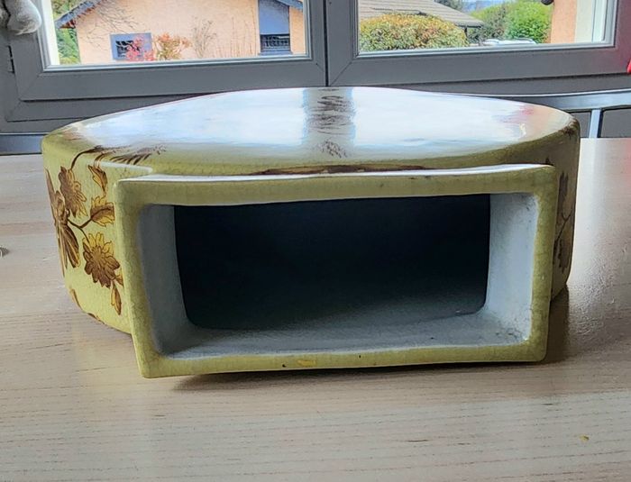 Il est vraiment très joli, dans les tons jaunes moutarde il est en très bon état. Ses dimensions sont sur les photos.