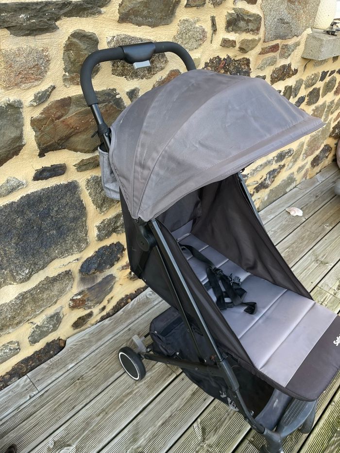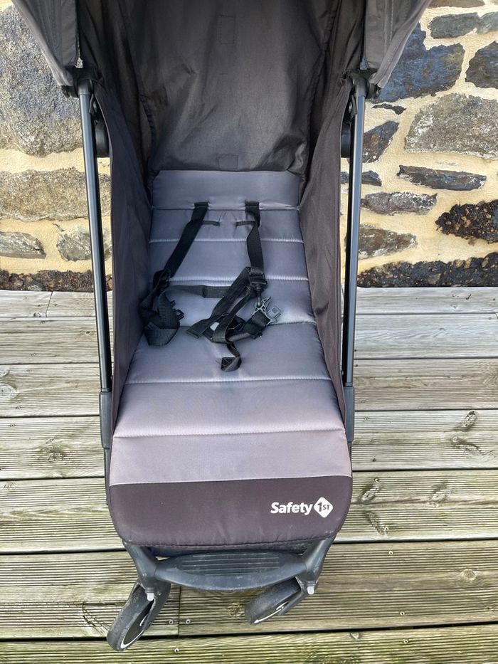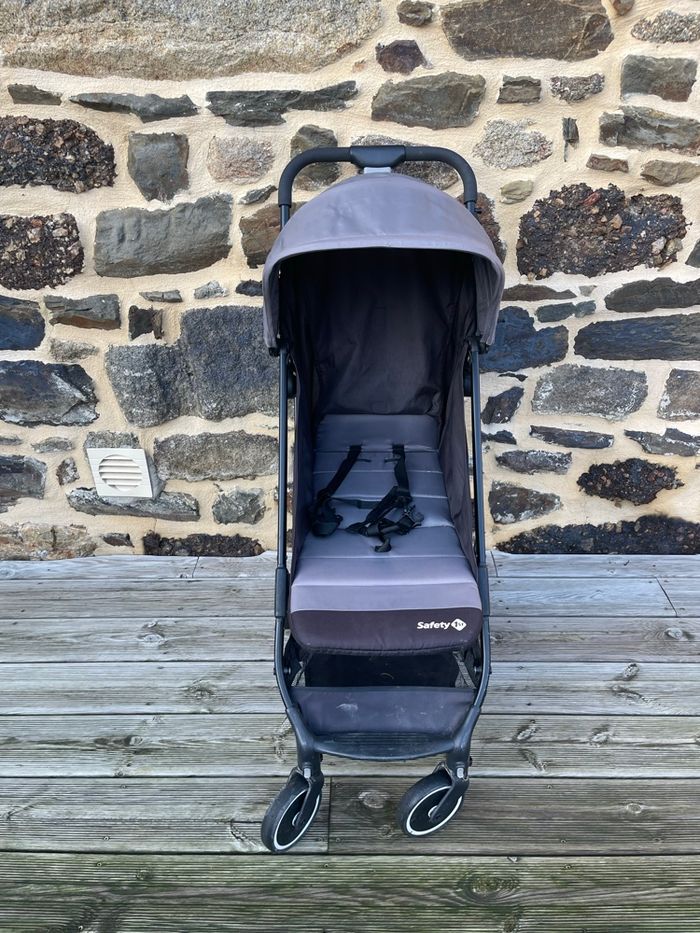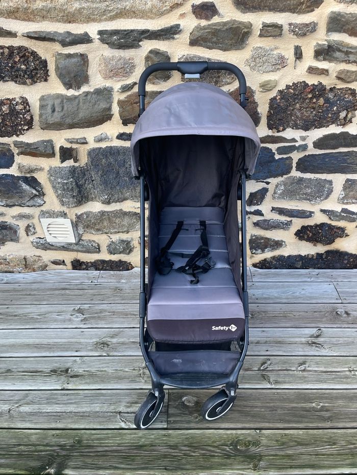 Poussette compacte et légère (5,6kg). Se replie d’une main. De la naissance à 15kg ( 3 ans 1/2 à peu près). Très bon état poussette qui ne servais que chez les grand parents donc très peu servit x Roues pivotantes mais peuvent être bloquées droites d’un clic Frein au pied très pratique. Grande capote. Sac à langer de voyage à accrocher au guidon vendu avec. Modèle Soko - Safety 1st