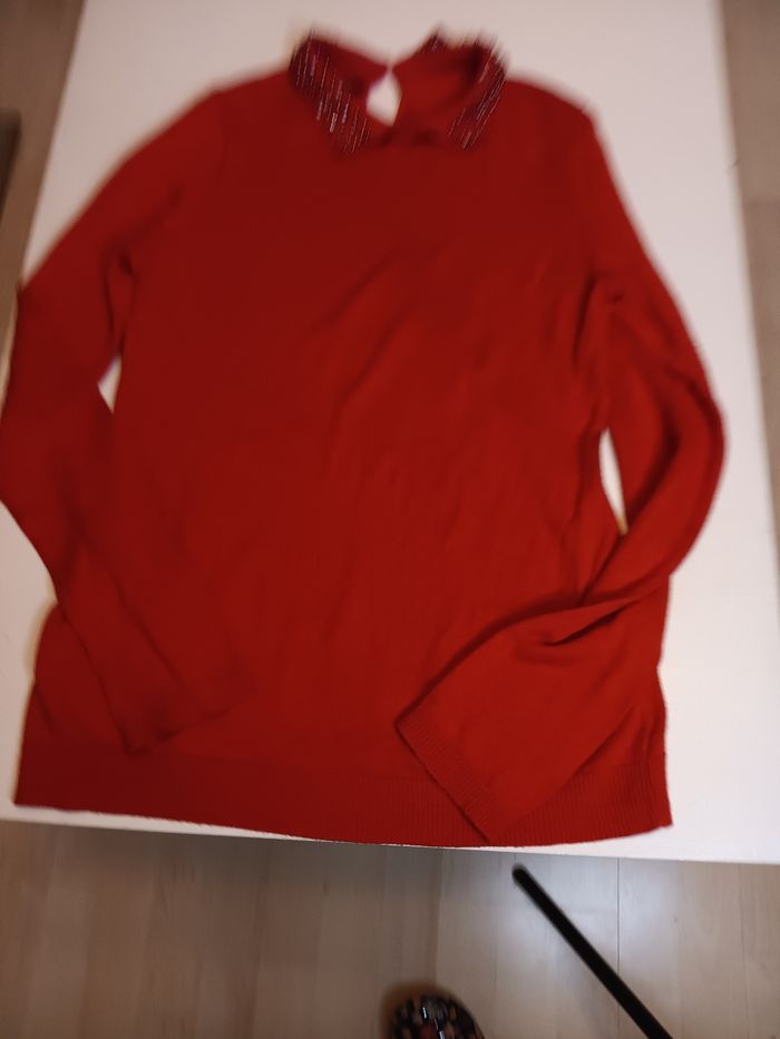 Très peu porté joli coloris rouge cerise habillé col brodé perles et strass