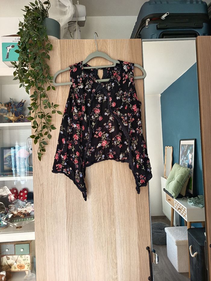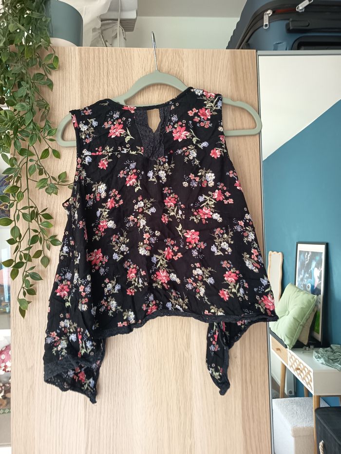 Top dos nu noir fleuri jennyfer - Taille S 36 En bon état