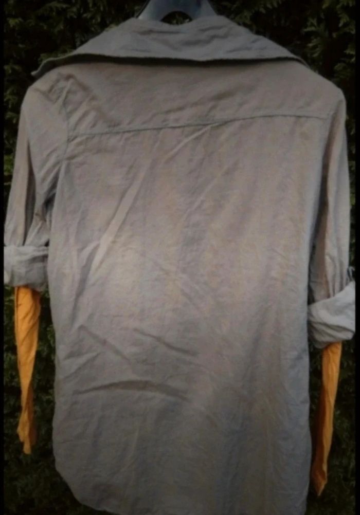 Ensemble coton femme chemise et T-shirt manches longues M Un t-shirt à manches longues et une chemise très fine, très fluide avec manches retroussables par pâte et bouton. Style décontracté. Boutons nickels. Tout coton. A repasser !! 🦚🦉🦜 Faites un lot, 10% de remise dès 5 articles achetés !