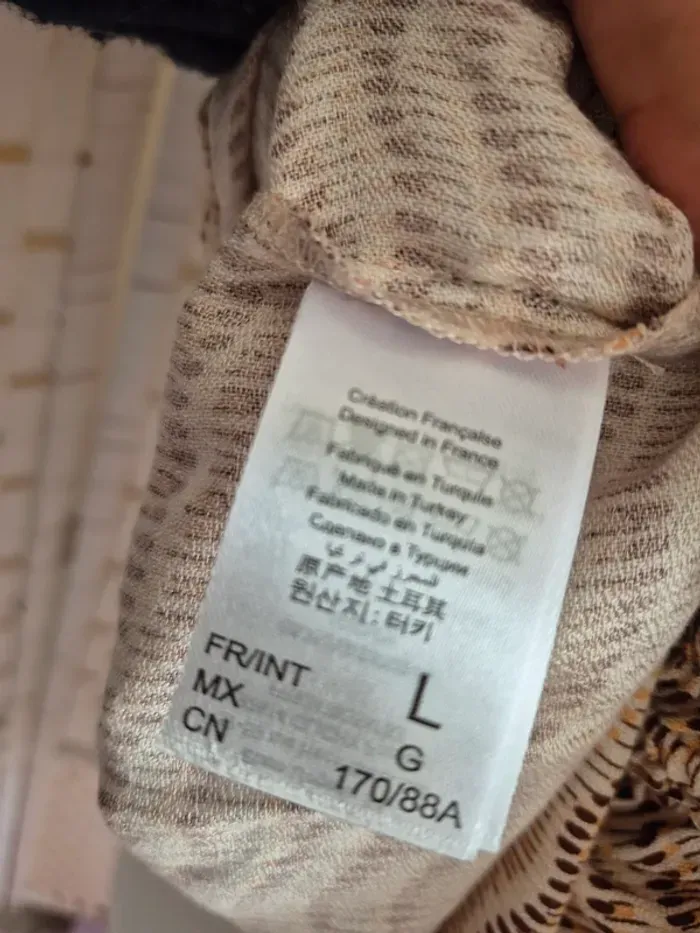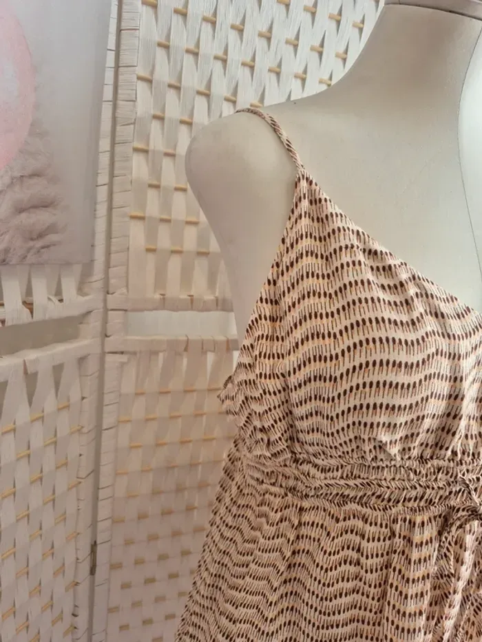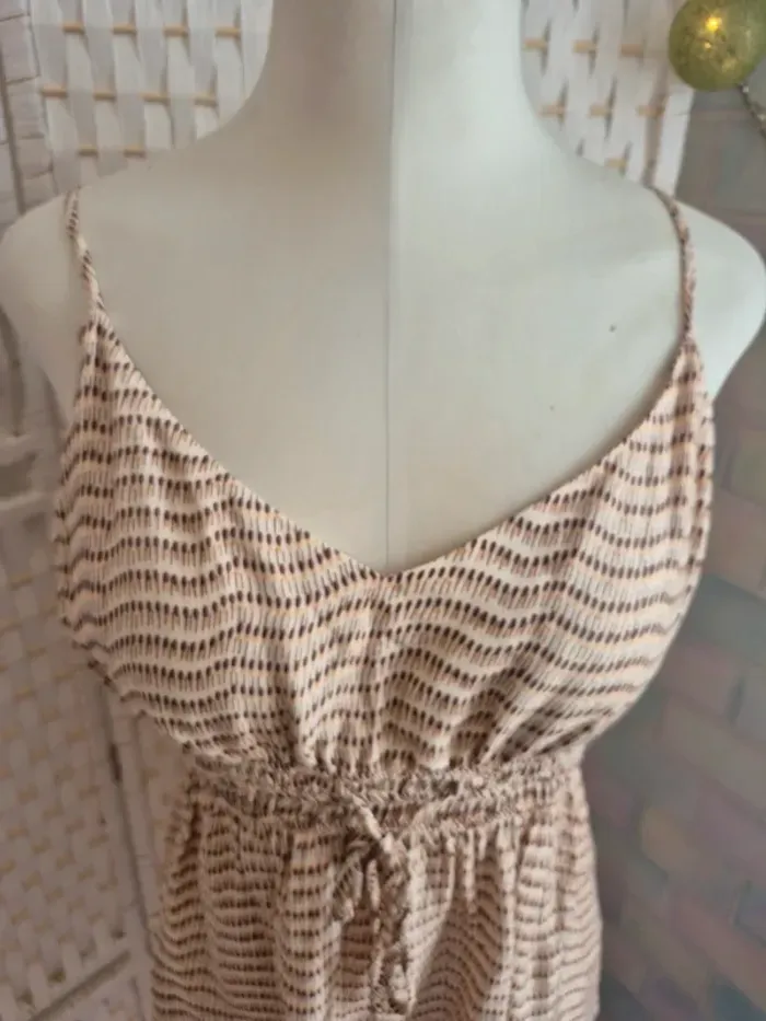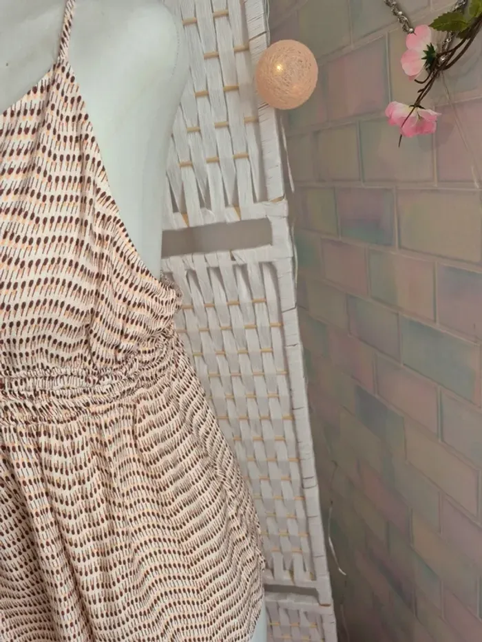 💕Joli caraco fluide de la marque Etam, idéal pour la mi-saison ou les douces soirées d'été. Son motif discret et sa couleur neutre le rendent facile à associer ! 🏷️* Marque : Etam 🎨* Couleur : Beige/blanc cassé avec motifs fins (camaïeu de marron/rose pâle) * Style : Top à fines bretelles, encolure en V, taille smockée et ajustable par un lien. Coupe ample et confortable. 🧵* Matière : Non précisé sur l'étiquette visible, mais semble être une matière légère et fluide. 📏* Taille : L / 40 🧵 100% viscose 👍* Condition : Très bon état 🏠Maison non fumeur 🚭 📦Envoi soigné dans les 48h - N'hésitez pas à me poser vos questions ! 💌* 👀Pensez à consulter mon dressing pour profiter de prix réduits. Ici ⏩ #ribeirozazafemme40 Parfait pour un look décontracté chic, à porter avec un jean, un short ou sur un maillot de bain. #etam #top #topfemme #topyet #caraco #caraco40 #caracoetam #caracofemme #été40 #femme #femme40 #camaieu #motifs #bretellesfines #tailleL #été #printemps #modefemme #casualchic