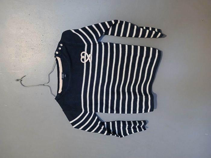 Pull fille - Taille ; 6 ans 🔹 État : Très bon état, porté quelques fois seulement. 🔹 Couleur : Marine, blanc 🔹 Marque : Kiabi 📦 Envoi rapide et soigné