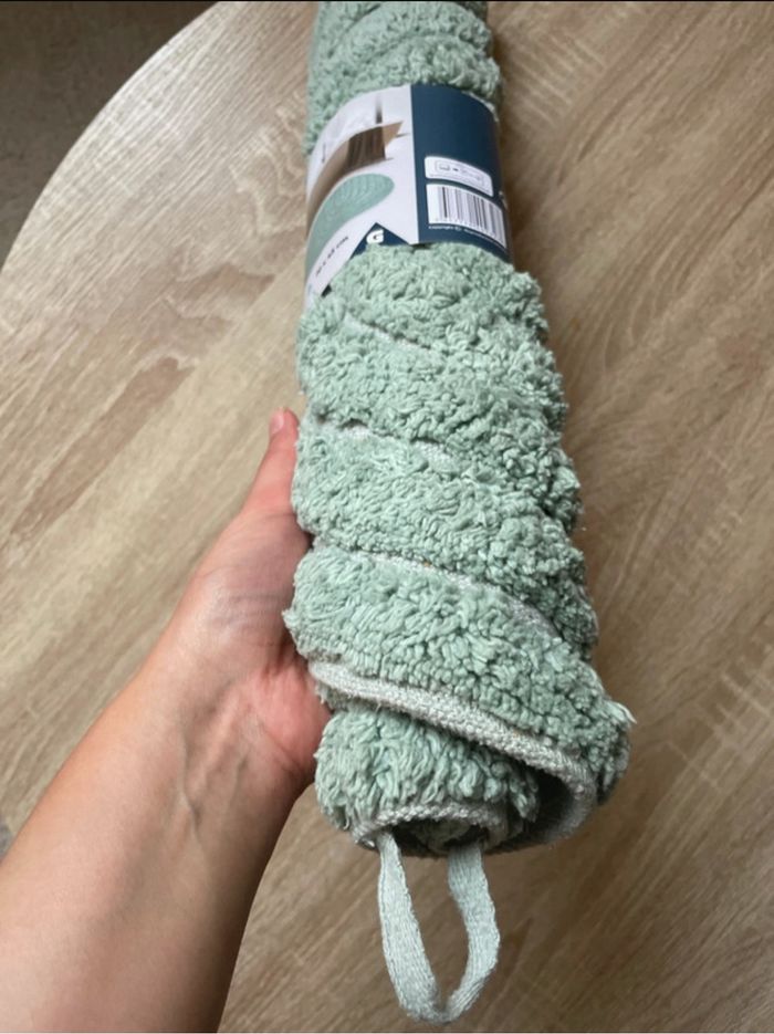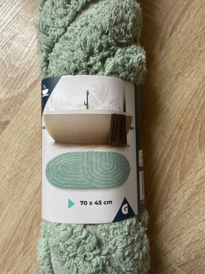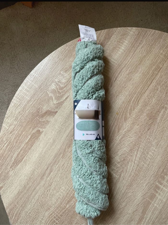 Je vend un tapis de bain 45x70cm vert d'eau ovale envoie rapide