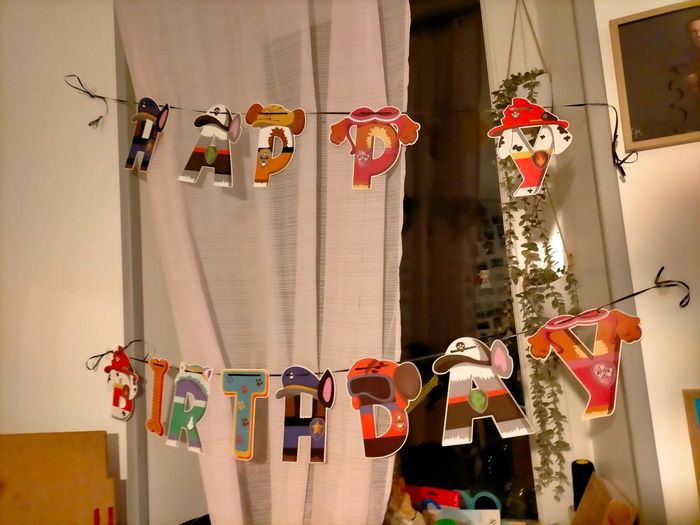 Bonjour vend lot anniversaire pat patrouille comprends : la toile , les ballons, ballon chien, banderole x2 , nappe table standard, serviette, guirlande spirale et petit contenant en carton