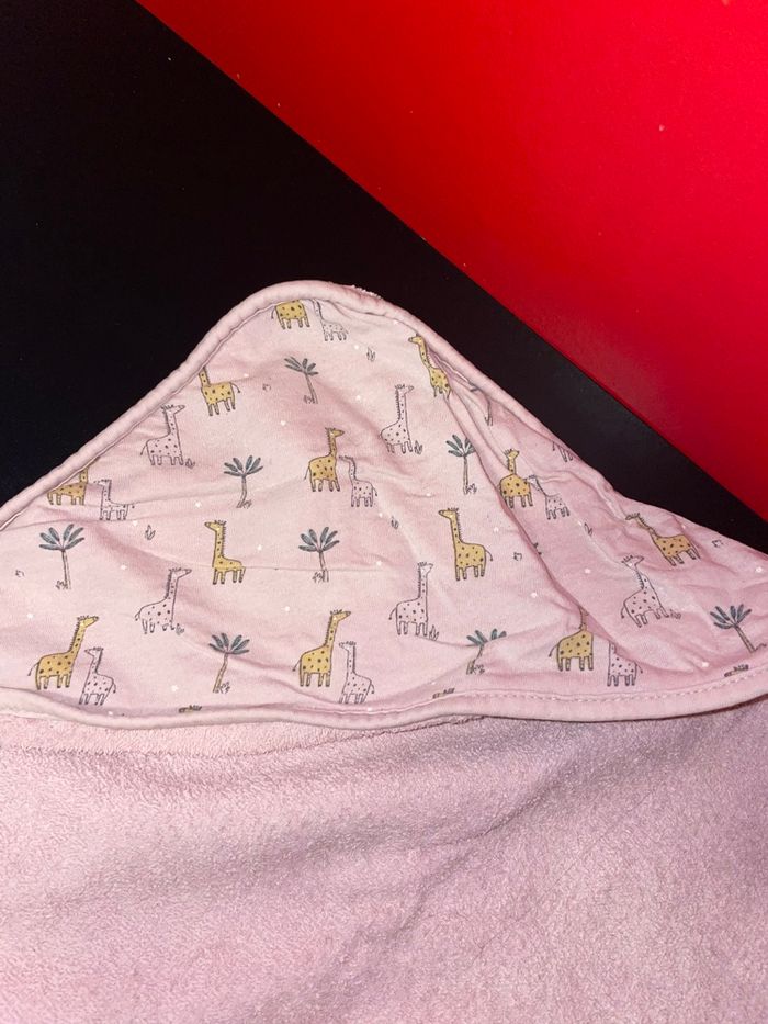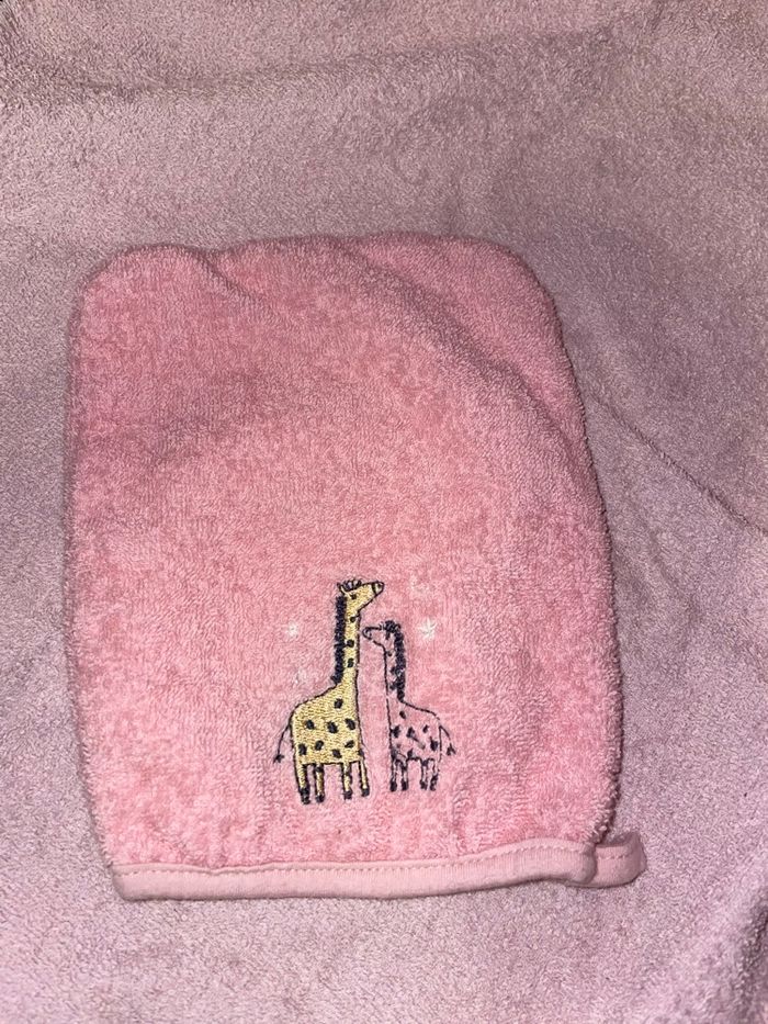 Sortie de bain bébé en coton eponge 🛁 Coloris rose avec capuche motif girafe 🦒 Marque kiabi, etat satisfaisant Etiquette de marque et d’entretien presentes Gant de toilette assorti neuf, jamais utilise 🤍 Ideal pour les moments de toilette tout doux #sortiedebain #serviettebebe #lingedetoilette #girafe #bainbebe