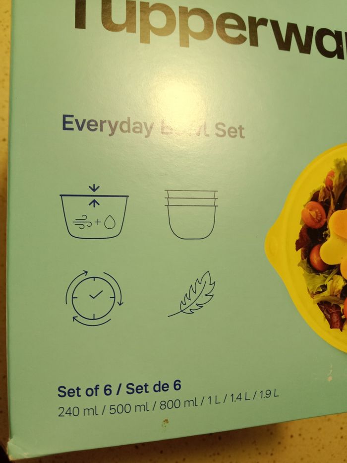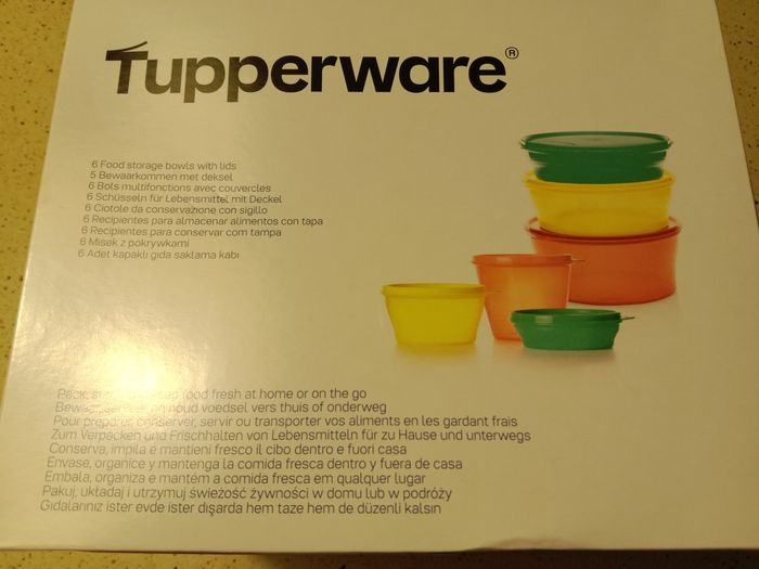Set de 6 bols et couvercles colorés. Tupperware Neuf dans sa boîte d'origine