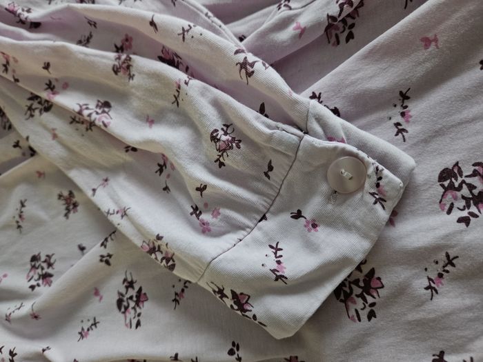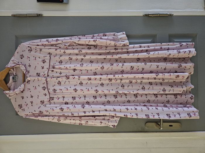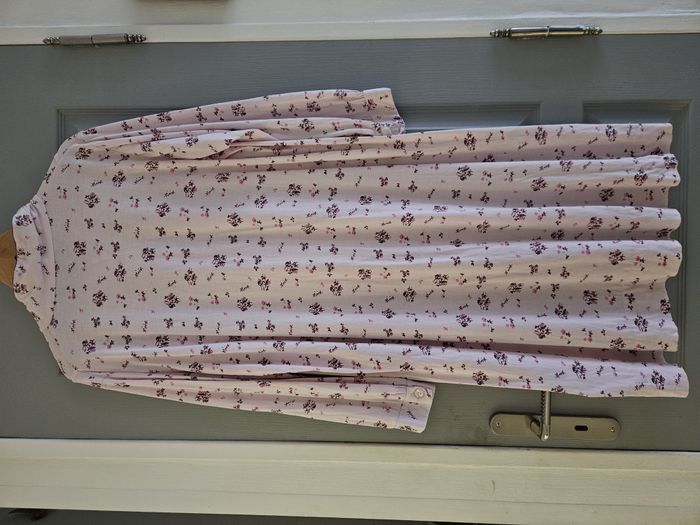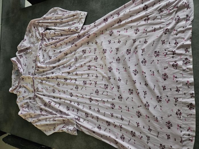 Chemise de nuit Longue Coupe femme Coloris rose Imprimé fleurs Boutons sur le col Boutons sur les manches Mesures : - Epaule à épaule : 48cm - Aisselle à aisselle : 59cm - Hauteur totale : 108cm Marque : Bleu Bonheur Taille : 46/48. Voir mesures Etat : Très bon état Envoi ou remise en main propre #chemisedenuitfemme #chemisedenuit #taille46 #taille48 #bleubonheur