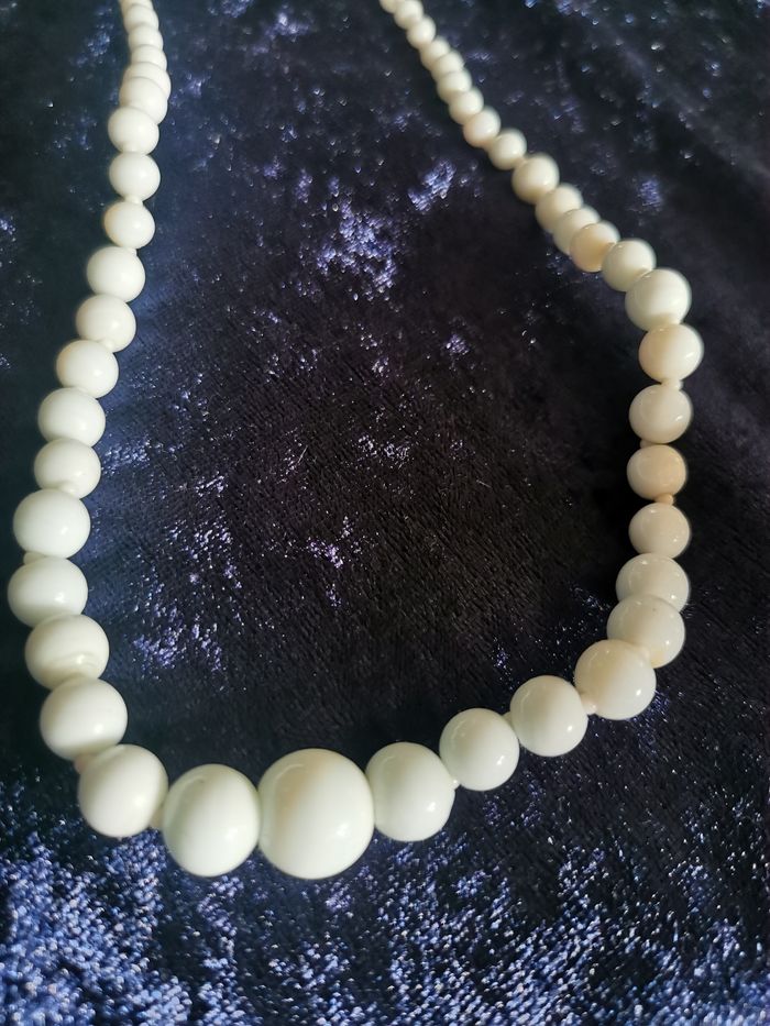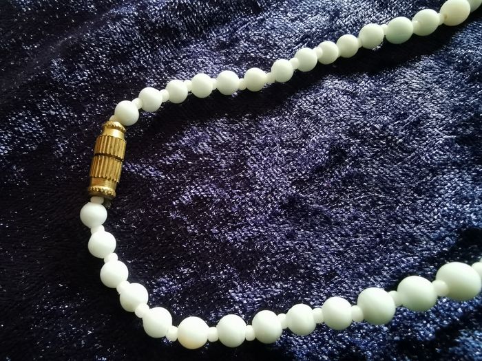 Collier vintage perles rondes verre de lait  - photo numéro 1