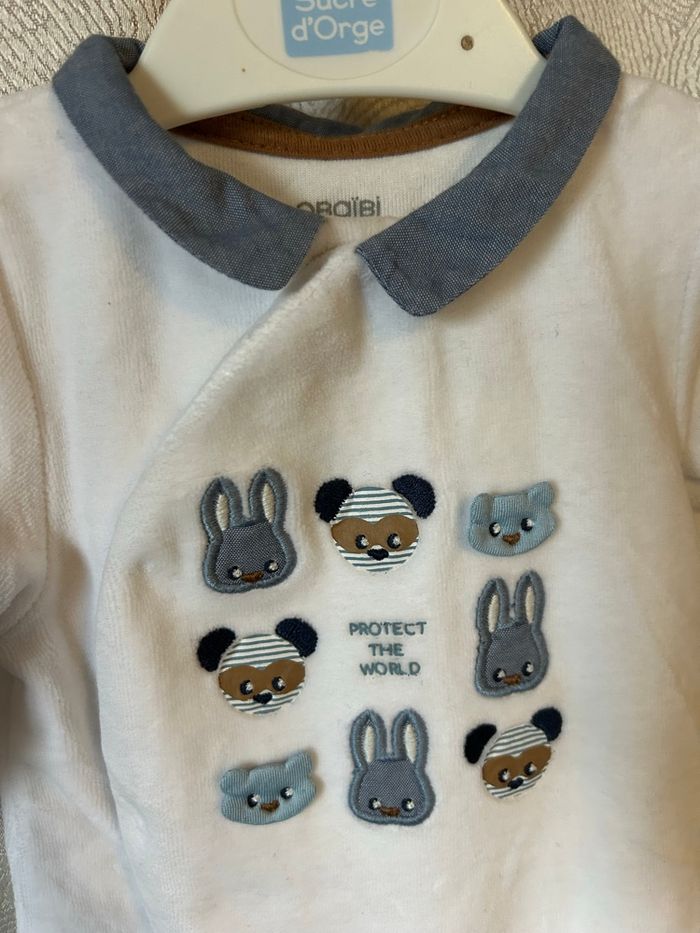 Très beau pyjama velours blanc 1 mois Obaibi - photo numéro 5