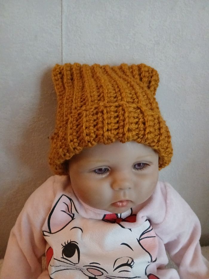 Bonnet bebe oreille de chat Taille 1/3 mois Laine oeko tex Article neuf