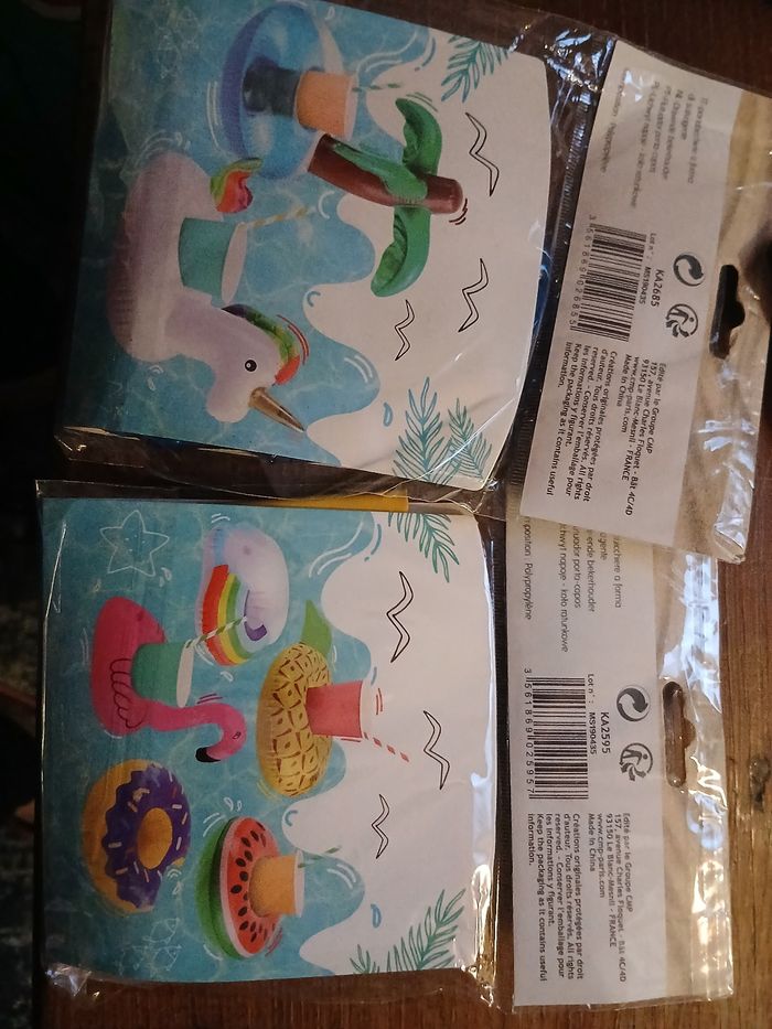 Bouee pour porte gobelet neuf encore dans son emballage. Un bleu et l autre jaune.